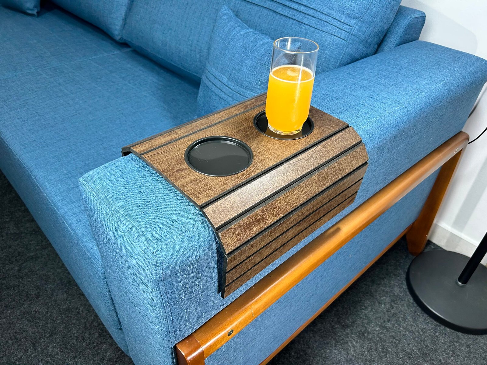 A fim de evitar tragédias derrubando bebidas, comidas, sujeiras no sofá. A esteira oferece boa praticidade e comodidade possuindo um porta copo, porém pode servir perfeitamente para pratos, garrafas e talheres.