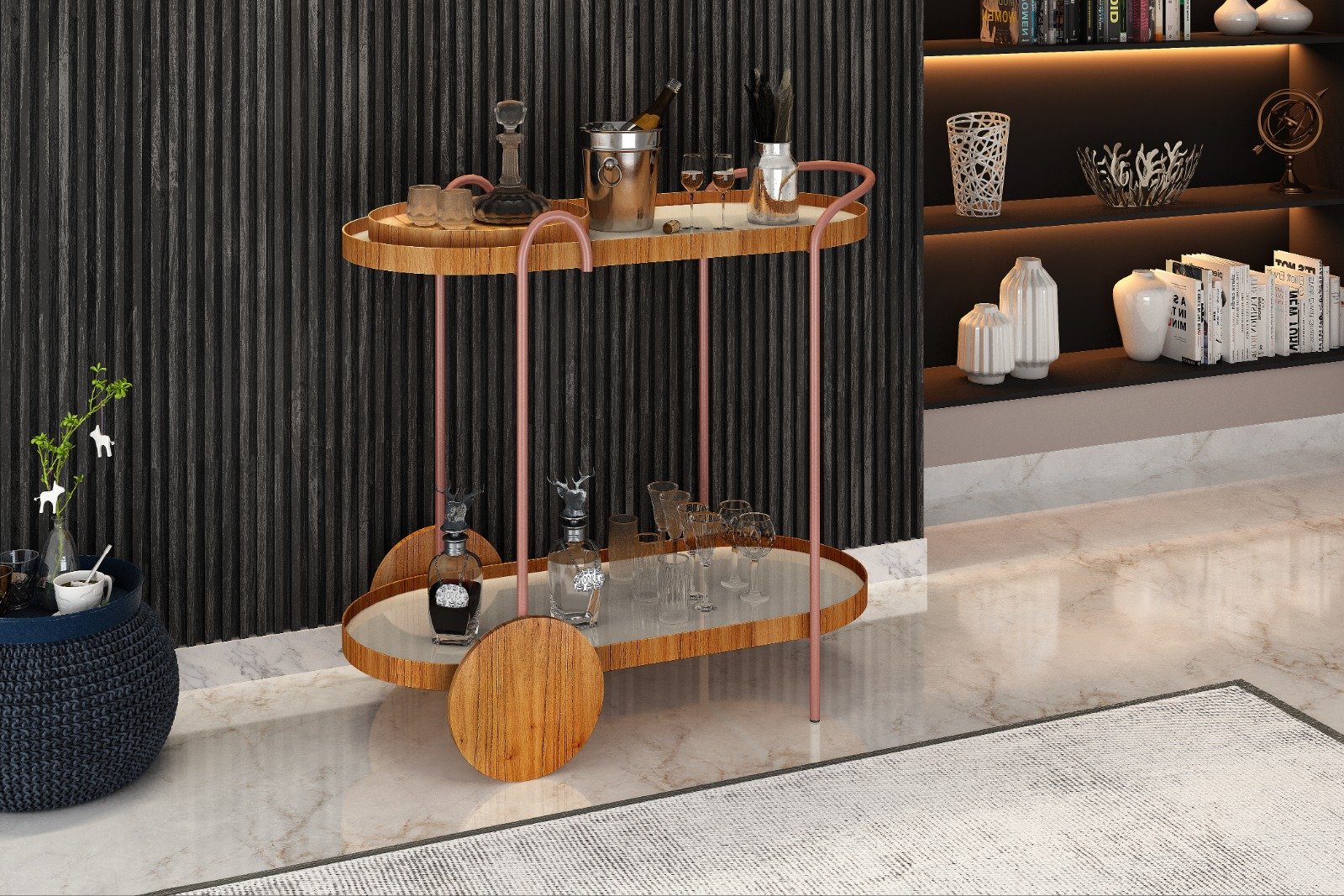 Este produto é versátil e garante uma decoração incrível para sua casa. Charmoso e útil ele pode ser usado em vários ambientes servindo como barzinho pessoal. NÃO ESTÁ INCLUSO: Objetos de decoração em cima e em torno do produto.