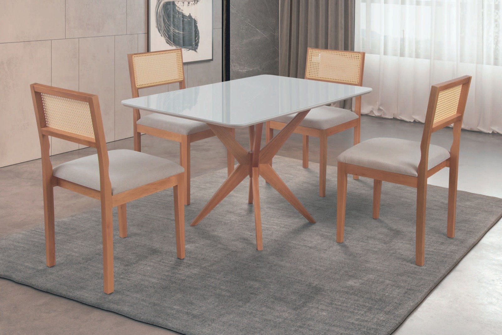 Reunir a família nas refeições é sempre uma celebração,não é verdade? O Conjunto de Mesa Estrela com 4 Cadeiras é perfeito para tornar esses momentos ainda mais divertidos e acolhedores.Feito com materiais de alta qualidade, eleassegura a proteçãodos seus convidados e transforma sua cozinha ou sala de jantar nolugarideal para essasocasiões especiais. A Sala de Jantar Estrela, foi projetada para dar elegância e comodidade para sua casa com design de alta qualidade e durabilidade, esse conjunto adapta ao seu estilo de vida.