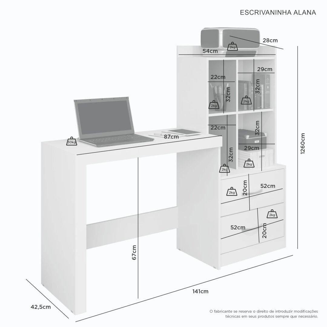 A escrivaninha alana Cinamomo/Off, é para organizar e otimizar o ambiente. Com nichos e gavetas para você guardar e acomodar diferentes tipos de objetos. A bancada é perfeita para acomodar o notebook, as 2 gavetas para você guardar livros, cadernos e documentos. Seja qual for o ambiente da sua casa, quarto, sala ou escritório, esse móvel será muito útil e tudo ficará no seu devido lugar. Para você que é estudante universitário e necessita de uma escrivaninha para seus estudos, esse é o produto ideal para você.