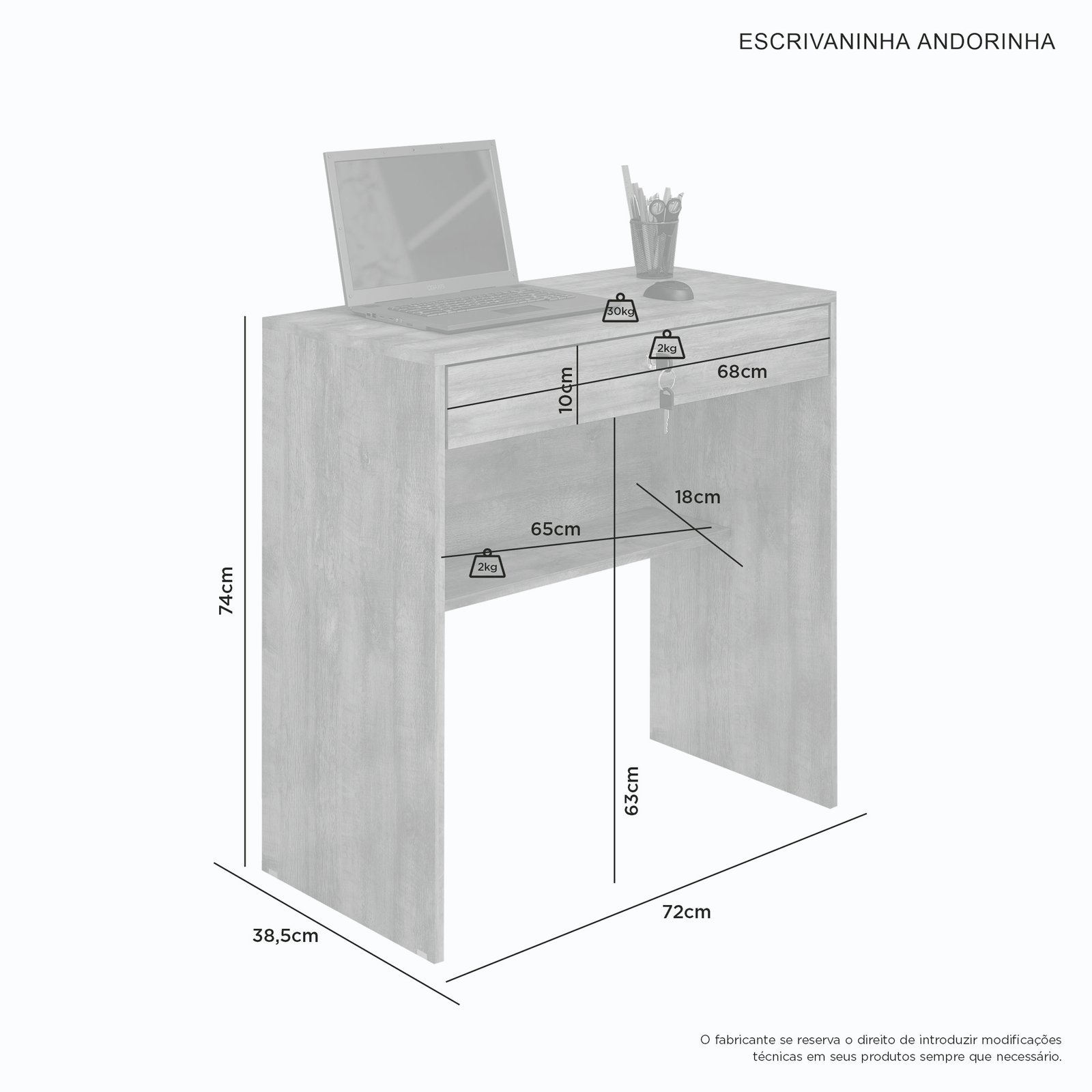 Escrivaninha Andorinha Gaveta com chave – Mesa para computador notebook quarto sala