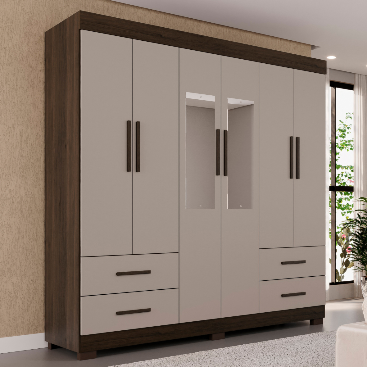 Esses elementos não apenas otimizam o espaço, mas também adicionam um toque de sofisticação ao seu ambiente. O Roupeiro Texas é a escolha perfeita para quem busca um móvel completo, estiloso e funcional para acomodar suas roupas com elegância.